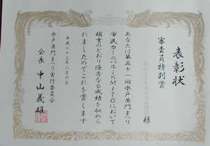 平成23年度市民カーニバル、踊りコンテストにて「50回出場表彰・審査員特別賞」を頂きました。