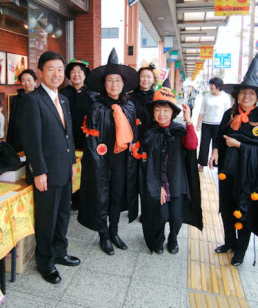 魔女の待ち受けるスタンプラリーの受付へお立ち寄り頂いた、高橋市長様 |