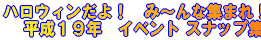 | 平成19年のハロウィン イベントは、雨の中 1部規模を縮小して 実施されました。 雨にもかかわらず、 多くのちびっこたちに あつまって頂き ありがとう ございました。 |