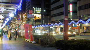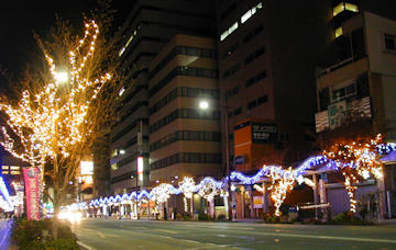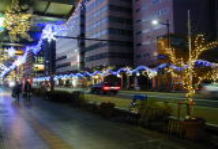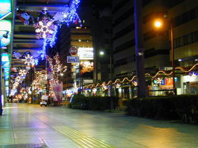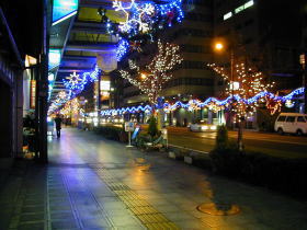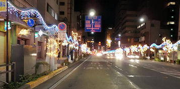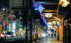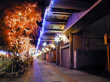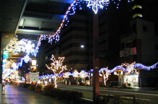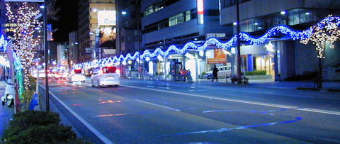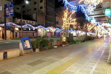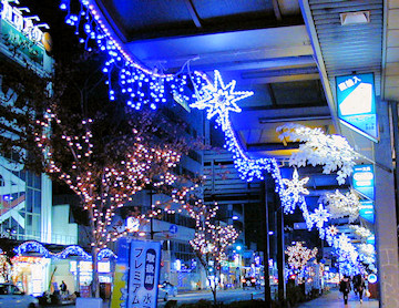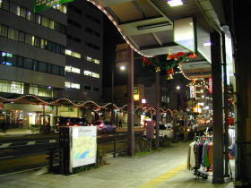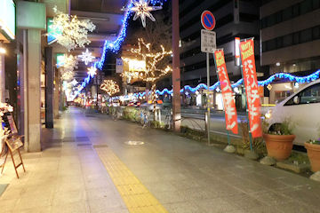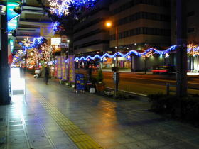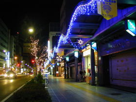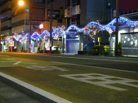商店街に波型アーケードを利用した「イルミネーション」装飾を行ってます。